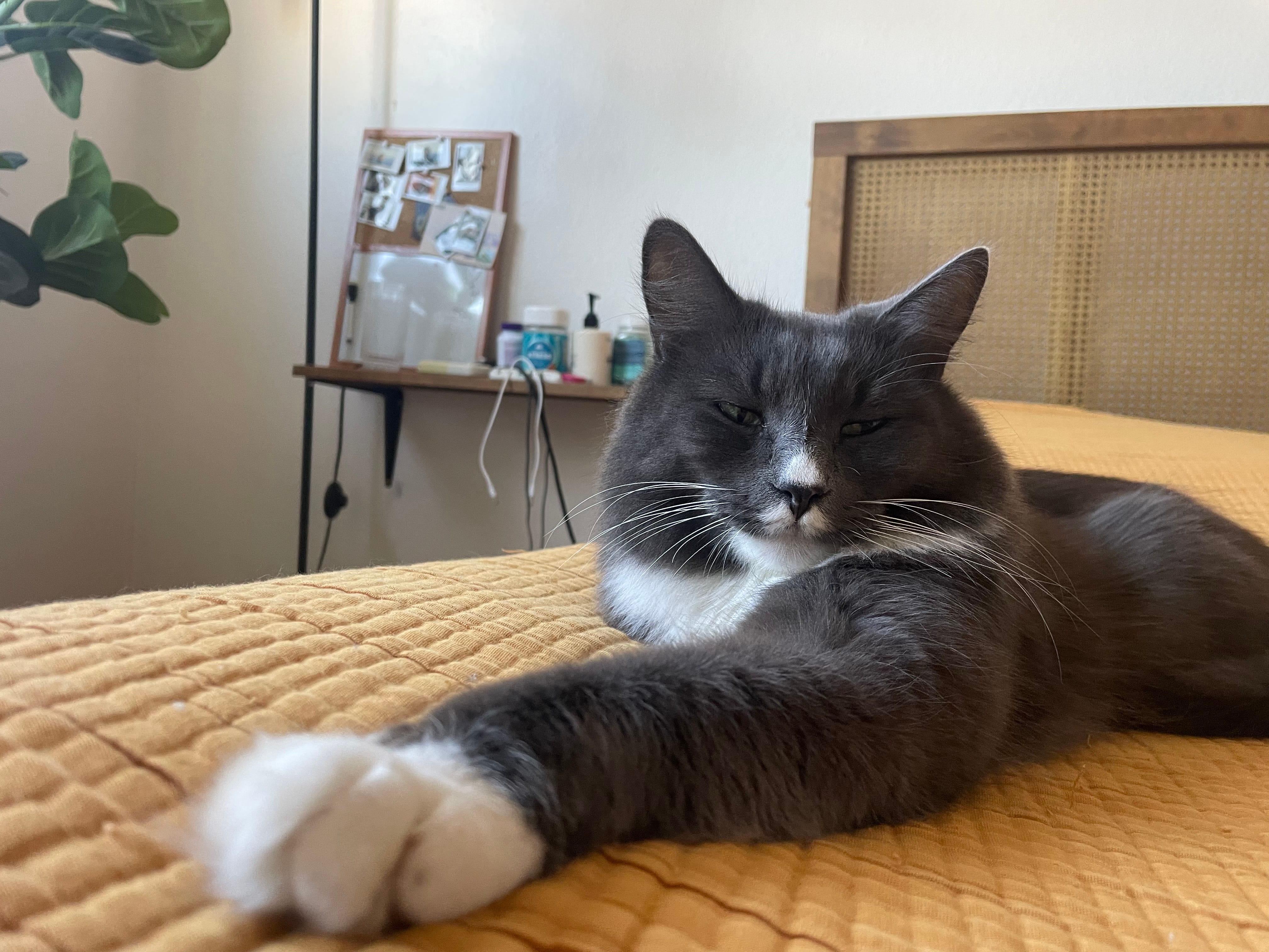 He must be taking his vitamins, but instead, he eats around them and then gives me this look. What are psychological tools to make your cat take vitamins, huh? Anyone? Comment below.